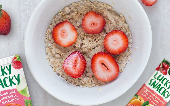 Супервариант для ситуаций, когда нет времени или настроения готовить перекус заранее, мыть, чистить и складывать фрукты в контейнер. Лучше отдавать предпочтение производителям, которые предлагают максимально простой и натуральный состав. Например таким, как Lucky Snacky — в их батончиках только яблочное и фруктово-ягодное пюре без сахара, синтетических ароматизаторов и пальмового масла. Современные технологии научились не только сохранять все полезные свойства ягод и фруктов, но и придавать им удобную форму. В основе состава всех батончиков — яблоко. Есть как чисто яблочный вкус, так и с другими натуральными фруктово-ягодными добавками: абрикос с клюквой и малиной, абрикос с вишней и абрикос с облепихой. Батончики в индивидуальной упаковке весят по 30 грамм, поэтому переборщить с размером такого перекуса у вас получится вряд ли, а вот утолить голод и зарядиться полезной энергией — еще как.После йоги