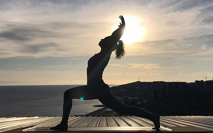 Если вам тяжело держать равновесие, вы можете опустить ладони на пол (или на кирпичи) или вытянуть руки назад вдоль тела. Сделайте 5 вдохов в этом положении, а затем осторожно вернитесь в позу Воина 1. Повторите обе позы Воина с другой стороны.