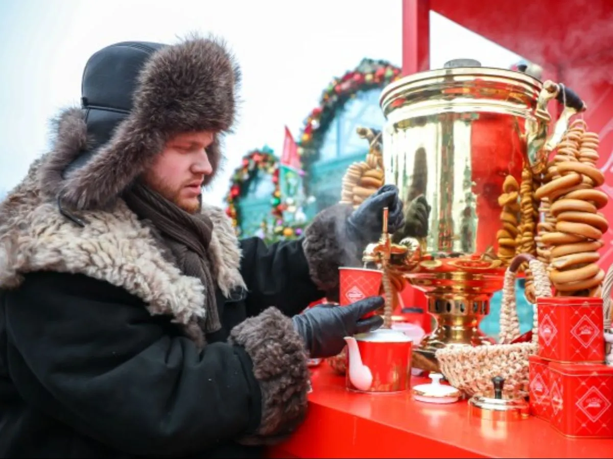 На украшенных санях кипит самовар, ароматный чай разливает актер-самоварщик, приглашая прохожих присоединиться к чаепитию. Атмосфера уюта и гостеприимства делает это место одной из самых душевных точек фестиваля.