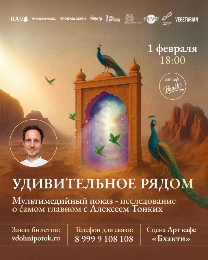 Мультимедийный показ-исследование о самом главном с Алексеем Тонких — визионером, организатором масштабных просветительных событий, йога-практиком с 20-летним стажем.
